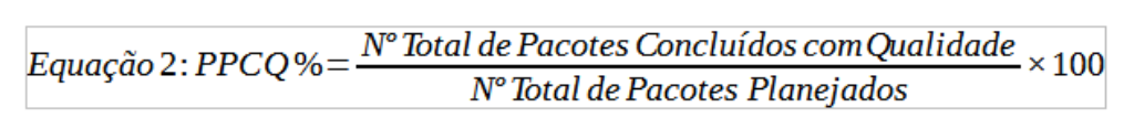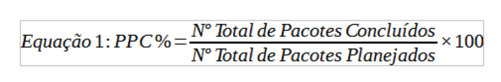 O PPC é calculado dividindo o número de pacotes de serviços concluídos pelo número de pacotes de serviços planejados no período de tempo, conforme Equação 1. Portanto, 100% seria o número almejado no resultado do cálculo do PPC.